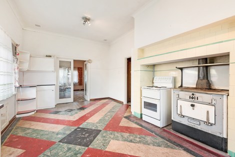 This huge space still has its original Metters woodstove, sitting next to an electric one, and the cabinetry is pure period, with a bank of small pantry cupboards, and sliding glass doors that glide as freely as the day they were installed.