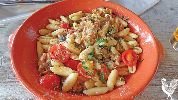 Our eyes were much larger than our stomachs, but I had fasted for the occasion, so we settled on the arancini balls ($12); orecchiette alla pugliese pasta with spicy sausage, eggplant and cherry tomato ($24); and the parma pizza topped with fresh rocket, imported Italian prosciutto and shaved parmesan ($24).