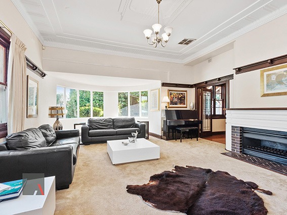 Built in the 1940s, this four-bedroom home has great art deco heritage, with soaring decorative ceilings, fireplaces, deep skirting, rich jarrah floors, lead light windows, and jarrah plate rails.