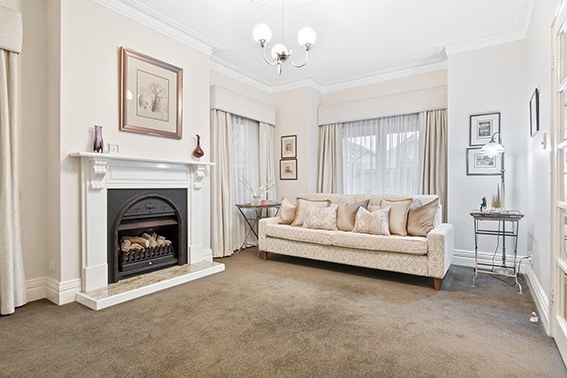 The adjacent formal lounge, with its ceiling rose and gas-powered log fire, could just as easily be a great study.