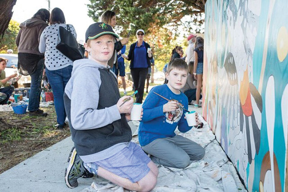 Mt Lawley resident Susie Griffin brought her son Leo and nephew Angus to participate in the mural painting, and said it was great to see so many other people involved.