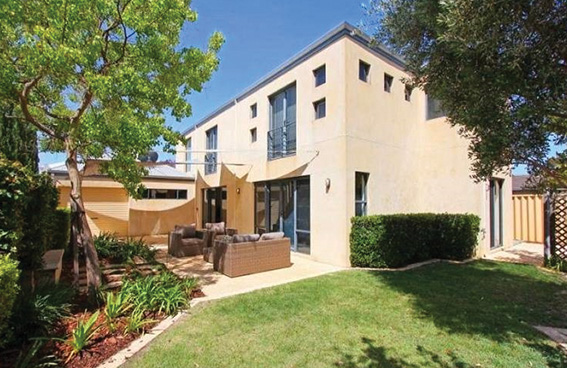 There’s a swathe of grass for the kids to play, a water feature, and an assortment of shrubs and trees, including a lemon and an olive.