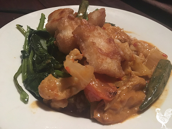 I’d ordered fish curry ($18.80) and steamed vegetables with garlic ($11.80) to take home.