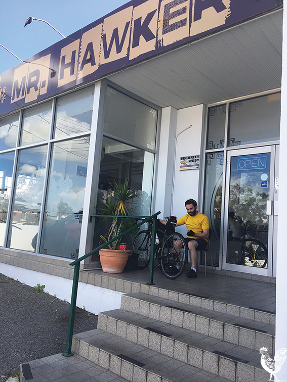 THE cyclist clad in yellow lycra rushed up to the counter, his cleats tapping out a rhythm Sammy Davis junior would have been proud of.