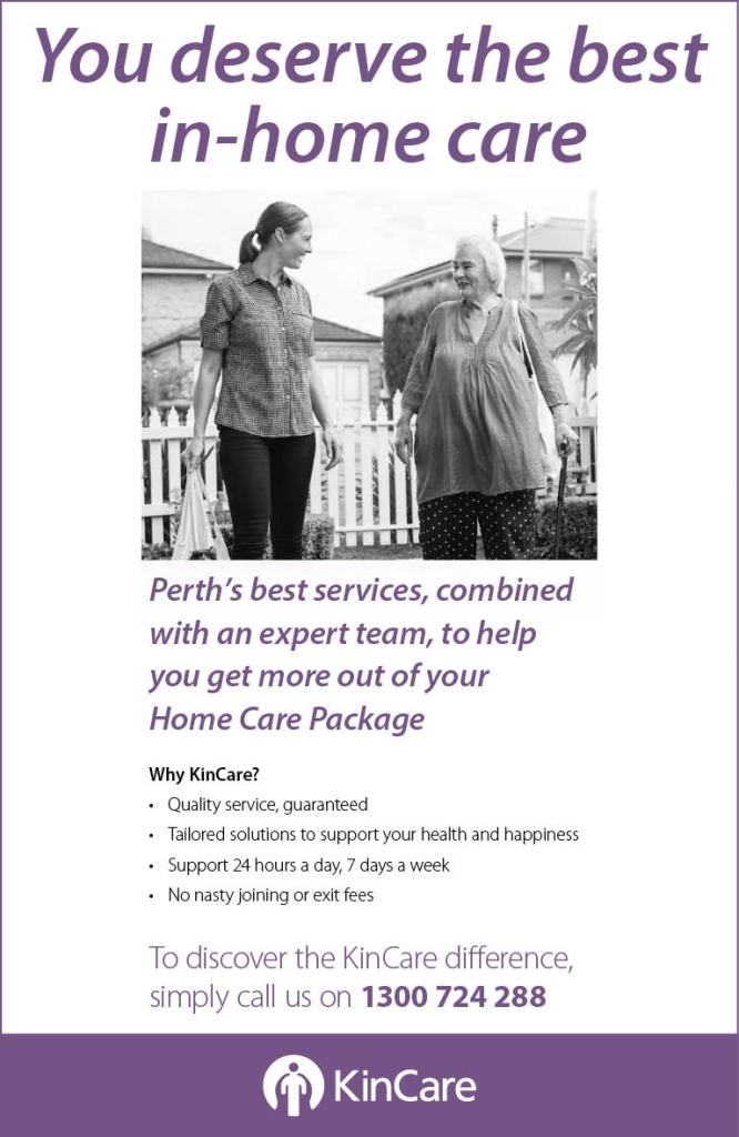 For more than 25 years KinCare’s family owned and operated organisation has been providing in-home support to older people, people with health needs and their carers. Committed to improving quality of life, health and wellbeing, KinCare will ensure you, your friend or family member will always be taken care of.