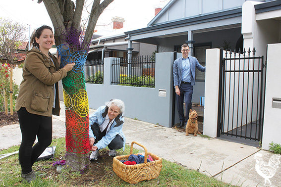 He’d helped the group to get their massive yarn installation on the Big Blue Head outside of Vincent council house, and then back in August he’d mentioned on the group’s Facebook page that he loved a photo of a tree that’d been yarned with a rainbow-coloured spiderweb.
