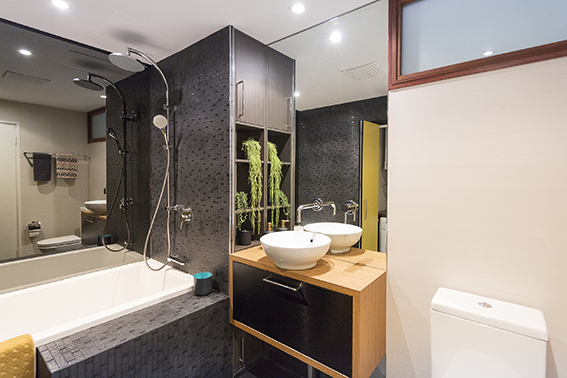It’s owned by two architects who spent a mini-fortune turning it into a uber-chic home that maximises its space—there was even room for their own bar.