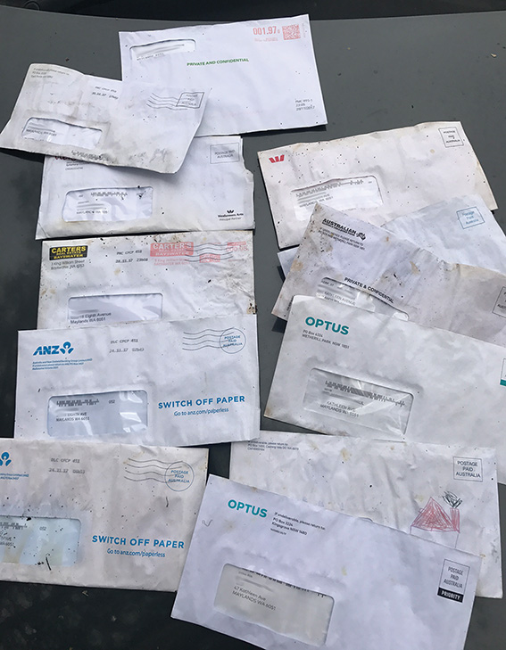 Bayswater councillor Catherine Ehrhardt was down at the Bardon Park Friends Group busy bee and found “a heap of what I assume is stolen mail” down there. Among the bills there was also pathology results and even a child’s letter to Santa in the pile.