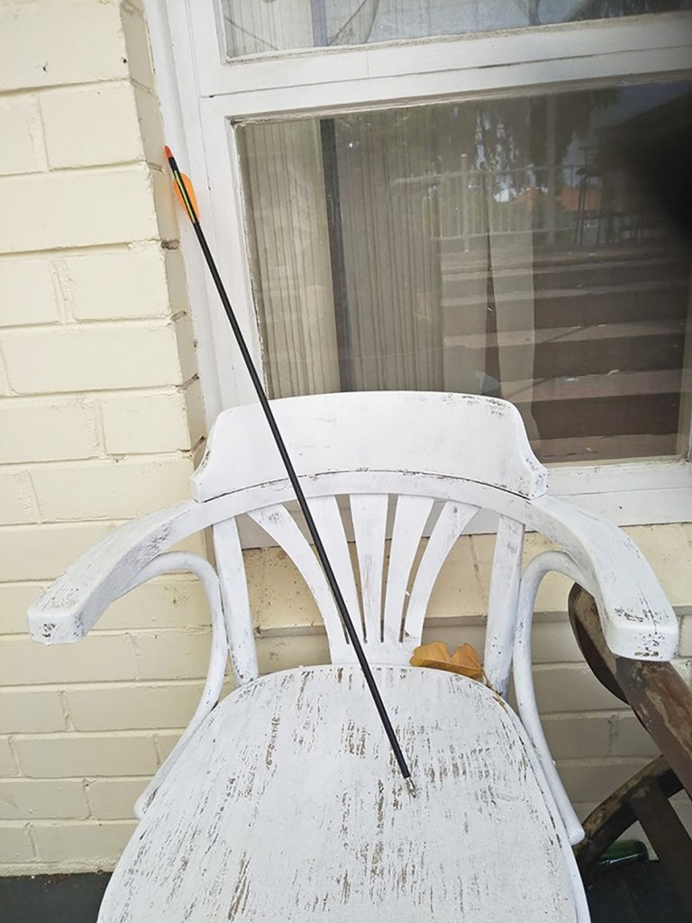 One small mercy: the arrow’s point was a target tip, which creates a narrow wound channel.