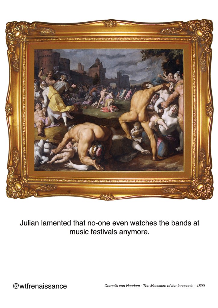 She started adding captions to Renaissance paintings, “basically entertaining myself, and then accidentally started entertaining other people so decided to keep at it”.