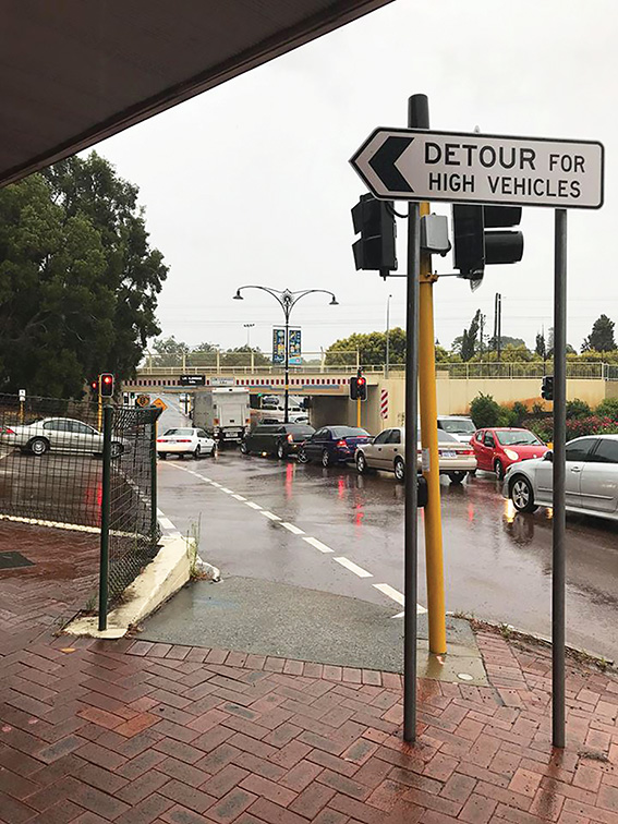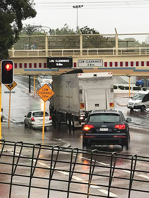 There are three signs warning of the King William Street underpass’s 3.8m height limit, but while they’re obvious approaching head on, you only get a last minute warning if you come around the corner from Whatley Crescent.
