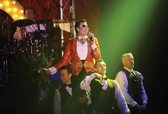 The Swizzle Boys—Benjamin Lewis, Simon McClure, Will Underwood and Joren Dawson—were very easy on the eye as they performed dazzling acrobatics and feats of strength, all while tossing cocktails, or swigging straight from a bottle of champagne.