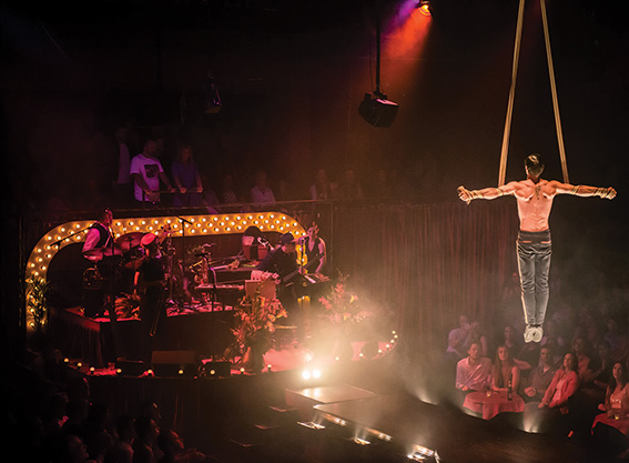Reminiscent of the Berlin cabaret scene before World War II, the old factory is decked out as a bar, until show time, when it’s stripped back to become a long, thin stage.