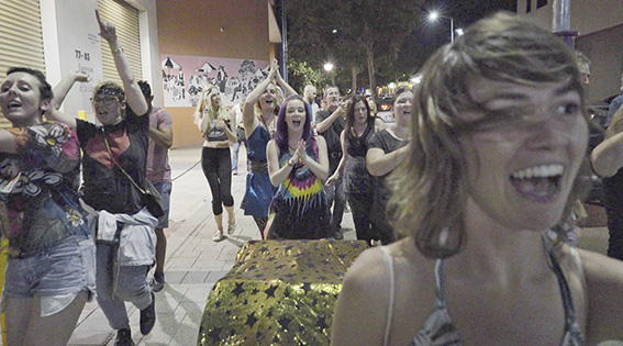 EN ROUTE to a Fringe show, Voice journo MOLLY SCHMIDT got sidetracked by a mate and found herself helping hundreds of strangers to launch a dance boogie through Northbridge. The infectious rave was part of a social experiment by Liberators International, a group aiming to spread love around the world by encouraging others to get involved in acts of affection.