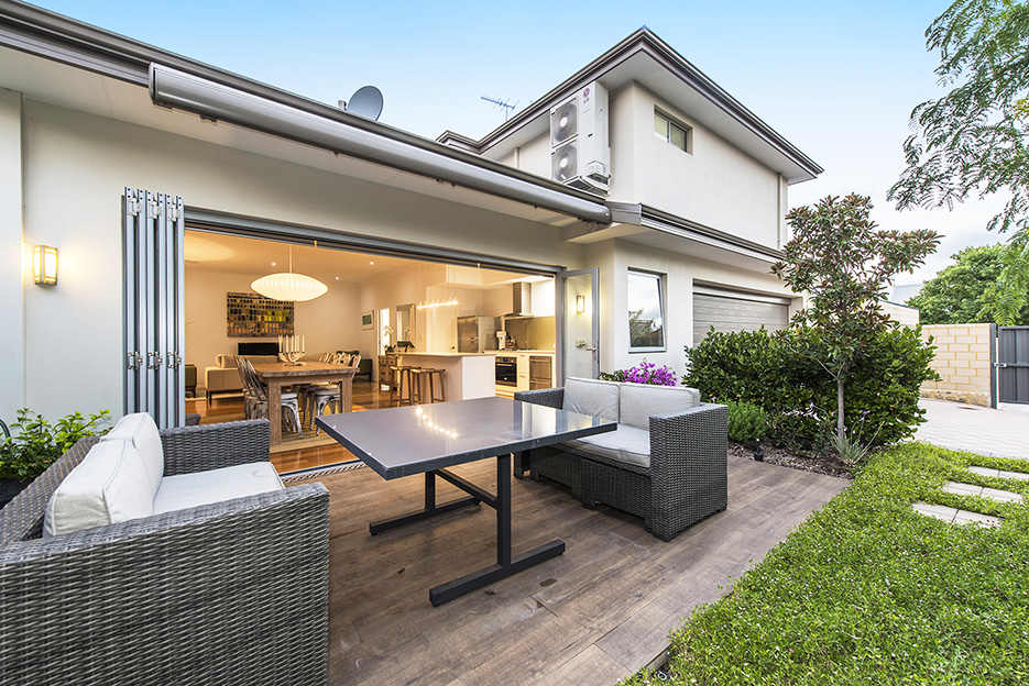 Slide back the bank of glass doors onto the alfresco area and it’s party time.