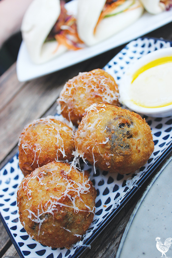 The mushroom and truffle arancini ($15) are very good. The extra large risotto balls are dotted with chunky mushroom pieces and the creamy filling exudes an earthy, truffle aroma. Mouthwatering.