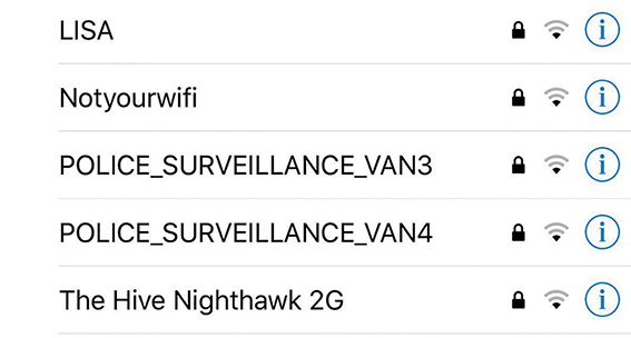 “None of the below Wi-Fi names belong to or have anything to do with police,” police media’s Susan Usher tells us.