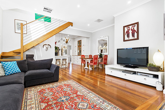 The bleached jarrah of the original section flows into the open plan—a commodious space that looks even larger thanks to the bifold doors that lead to the alfresco.