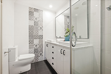 The main bedroom is large and has a walk-in-robe and en suite, with double vanities and an attractive feature wall.