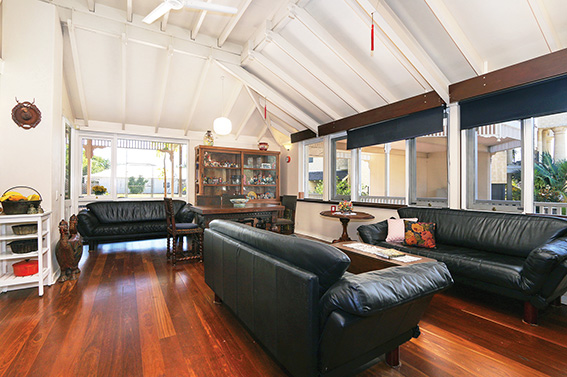 There’s beautiful red glass set into the peak of the ceiling, and huge picture windows ensure plenty of natural light and lovely views of Banks Reserve.
