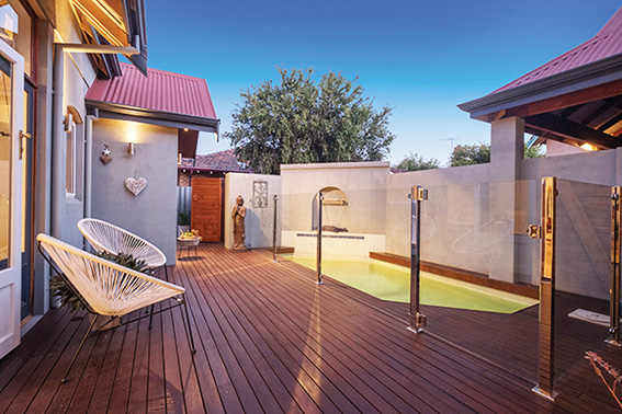 The timber-decked alfresco area is perfect for entertaining, with easy access to the kitchen for more supplies.