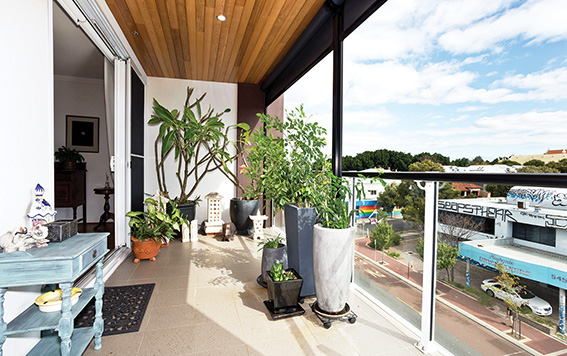 The main living area has a street-facing balcony. It’s a fantastic spot for an alfresco breakfast and there’s plenty of hustle and bustle on Beaufort Street to keep you entertained.