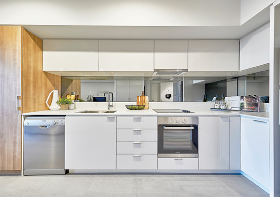 There’s lots of clever storage space, and the European-style laundry is “hidden” in a cupboard opposite the kitchen.