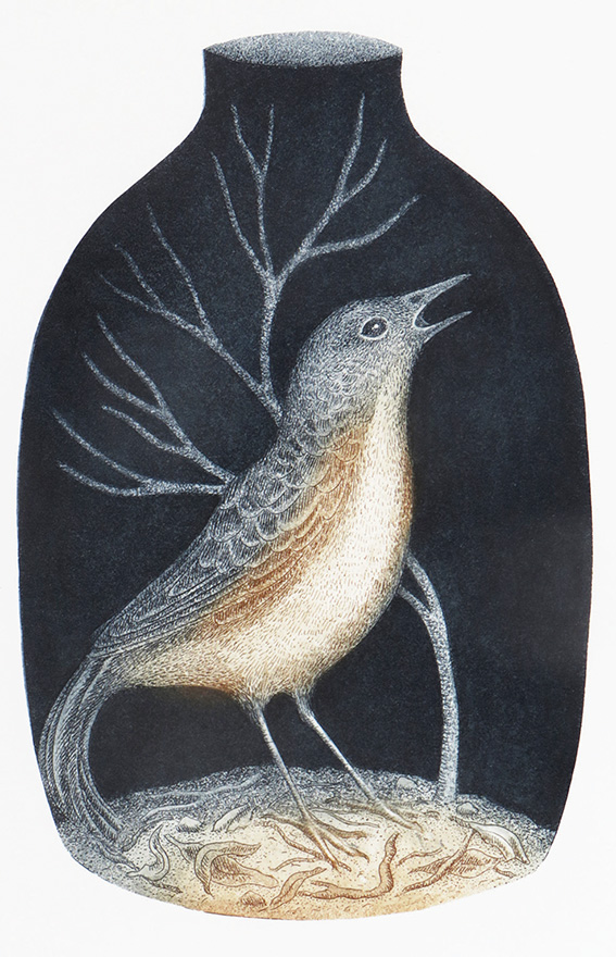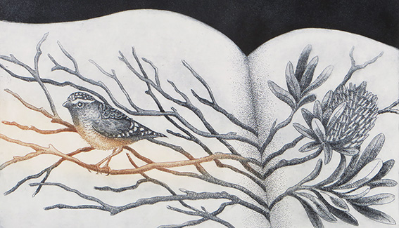 BIRDS, frogs and possums peep hesitantly from inside jars, while other animals are etched onto pages torn from old, mysterious books.