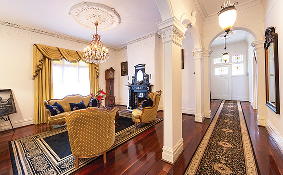 But don’t worry, all the heritage bells and whistles are still there, including art deco fire places, decorative ceilings and rich jarrah floors.