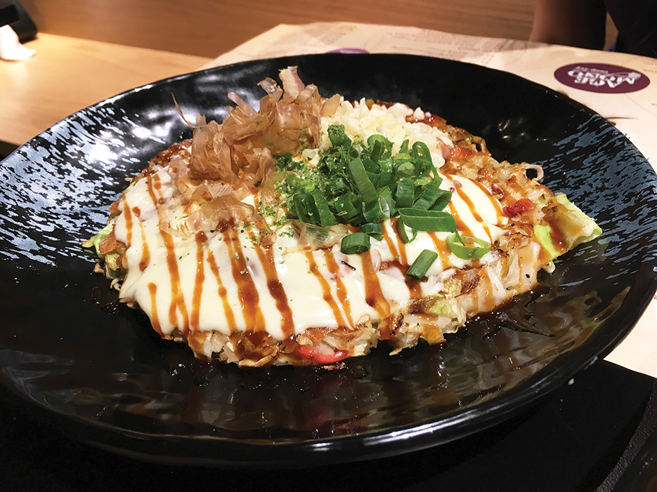 We went weird, ordering the cheesy bacon okonomiyaki.