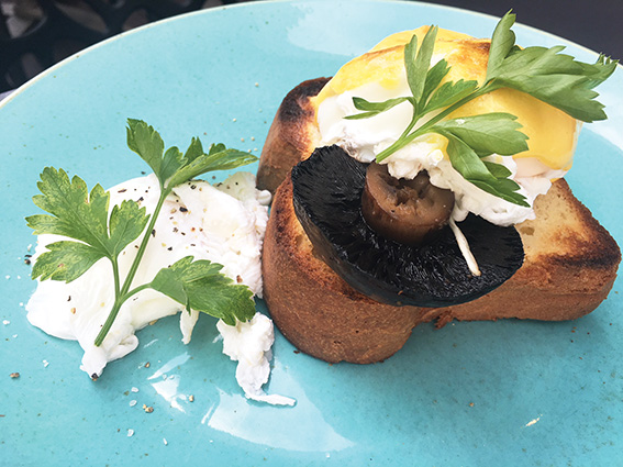“Trio” referred to the bread, a field mushroom and poached egg smothered in rich hollandaise sauce.