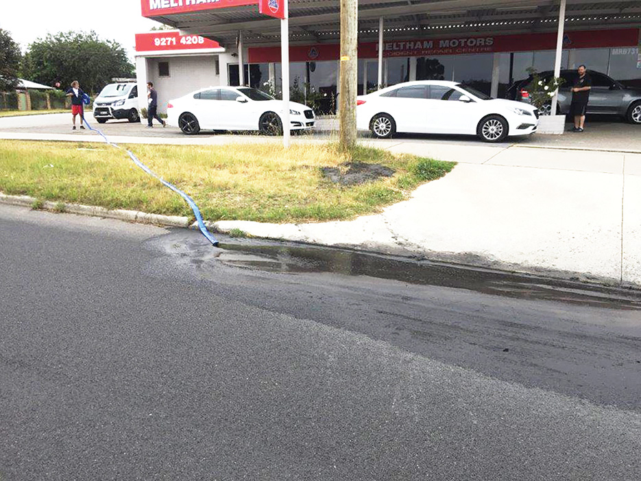 Mr Bellamy says the sludge was so thick it was blocking drains, prompting another Meltham Motors’ staffer to try and clear it by jabbing the grate with a screwdriver.