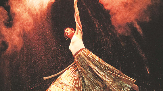 The mix of live music, son et lumiere, dance and arial acrobatics is laden with ceremony and destruction.