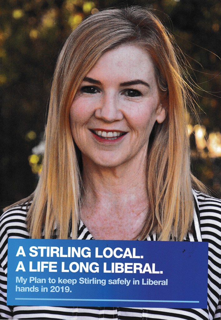 “Stirling has never been retained by any political party following the retirement of a sitting member,” wrote Ms Quinn in her brochure.