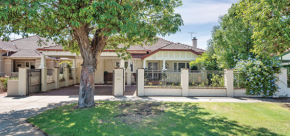 The abode has all the charm of its art deco period including stunning lead-light doors and windows, decorative ceilings, rich jarrah floors and attractive fire places.