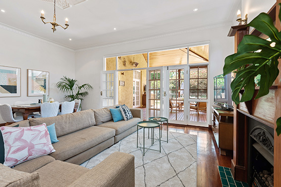 The formal lounge has a double set of lead-light doors and the fire has been converted to gas for instant warmth.
