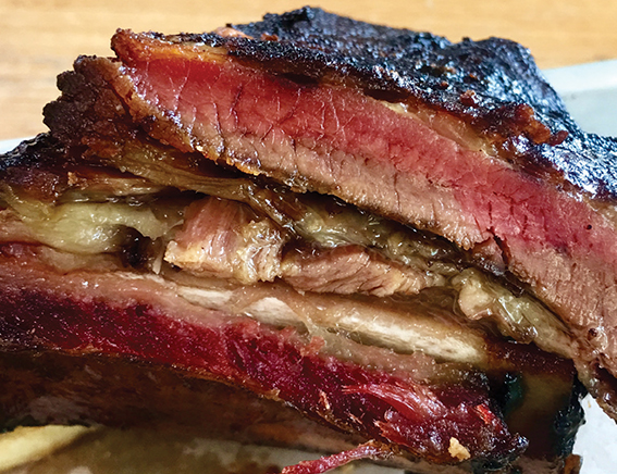 We should have stopped at the giant brisket steak sandwich ($16) packed full of sweet, smokey and tender meat and a large side of chips, but we couldn’t help ourselves and topped up our order with other barbecued delights.