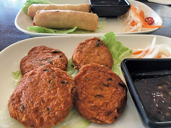 My friend and I shared vegetarian spring rolls ($5) and Thai fish cakes ($7.50).