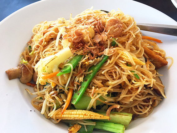 A mountain of Singapore noodles ($14.50) with fresh, crisp vegetables were first to arrive.