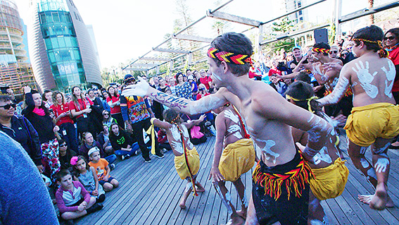 “Elders, artists, dancers, story tellers, musicians and the extended First Peoples’ community welcome you to share their knowledge of the country, we all call home, by getting involved in the cultural activations.”