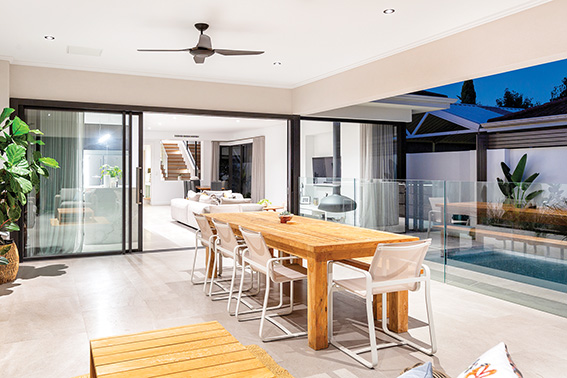 Beyond just design, Atrium has invested in functional spaces for the family. A separate scullery as well as a walk-in pantry provide practical solutions to modern living. That’s not to say they compromised the lifestyle. Large open-planned living and dining leads to the outdoor entertaining alfresco that overlooks the stunning pool.