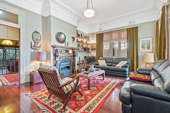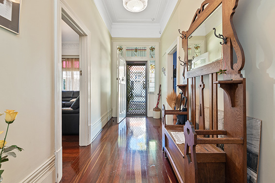 Inside you’ll find lots of early art deco features including rich jarrah floors, delicate ceiling roses, ornate vents, deep skirting, stained glass and tiled fireplaces.