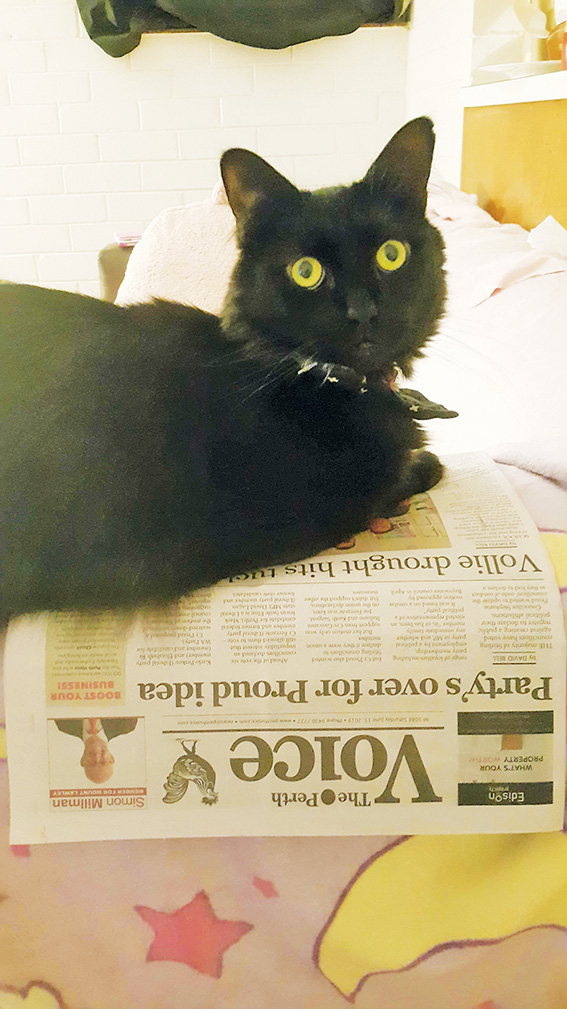 WEST PERTH’S Jennifer Motherway sent us this photo of her luscious cat Salem finding a new use for the Voice–as a bed.