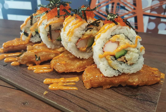 Mr Munchies prides itself on its sushi and there’s a wall menu of options to customise your own, with chicken (teriyaki, katsu or kraage), salmon, tuna, pork or vegetarian.