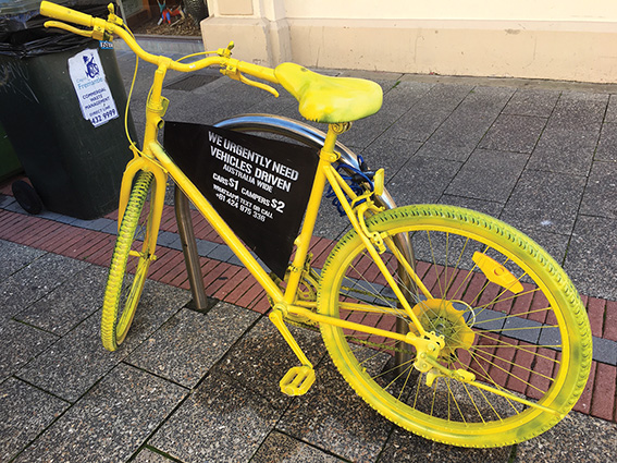 A LOATHED advertising trend has come to Perth with garishly painted derelict bicycles being chained to bike racks.