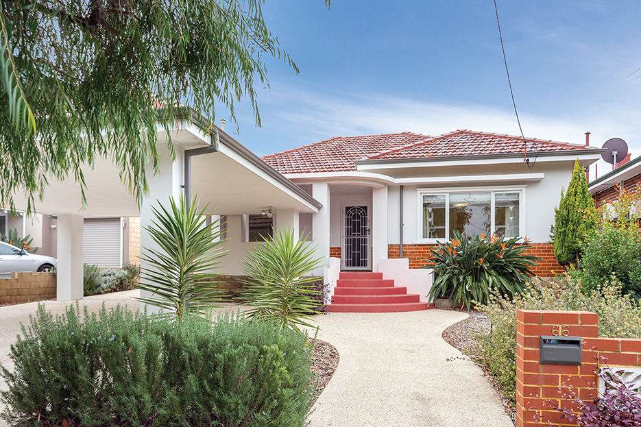 MUST be a South Fremantle supporter,” I thought as I clocked the white walls and bold red stairs in this Inglewood home.