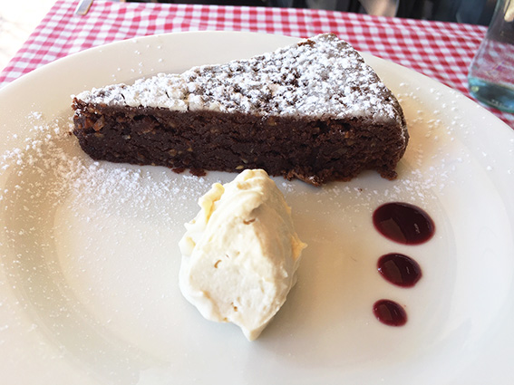 “Delizioso,” mio marito exclaimed, as he shoveled the seriously rich cake into his mouth.