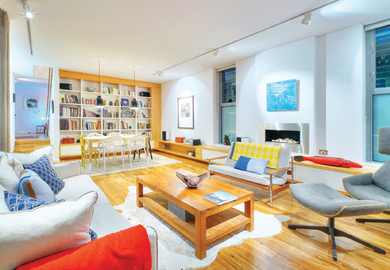 Grab a book from the built-in bookshelves in the living area and curl up in front of the gas-powered fire, where smooth round rocks spread an even warmth.