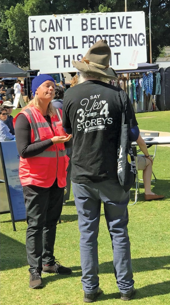 THE demolition application has reignited tensions in a divided town, with an anti-demolition protestor ejected from the Bayswater Growers’ Market on September 21.