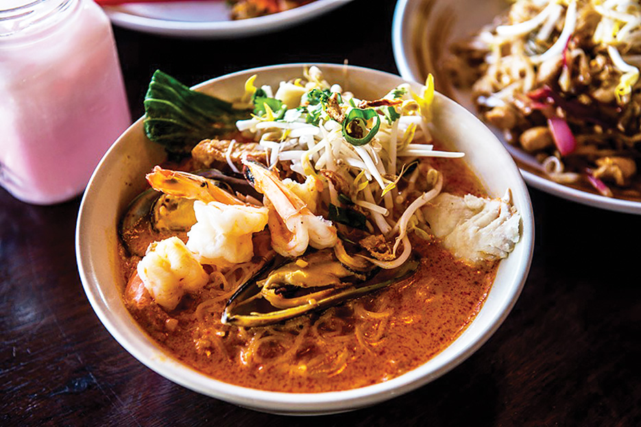 That wasn’t a problem with the vegetable green curry ($16.90), which packed a hot punch and had traces of basil and coriander in a creamy coconut sauce.